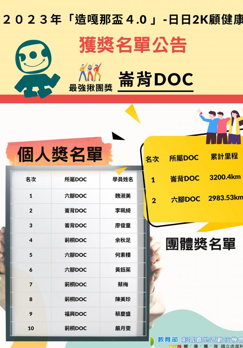崙背DOC以新人黑馬之姿榮獲最強揪團獎與團體獎第一名!!!
