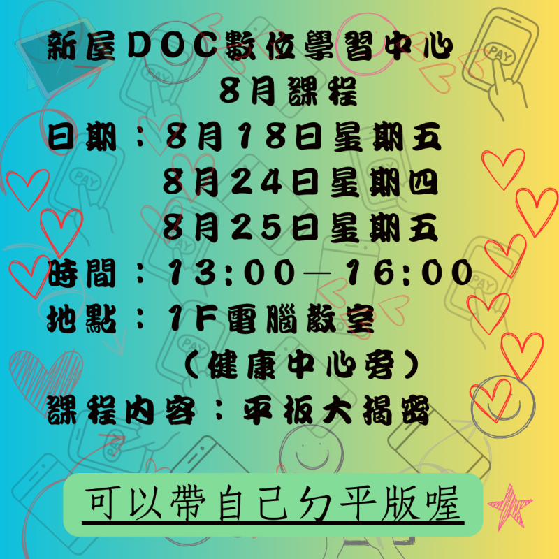 最新消息 DOC快訊 ::: <上一則 返回列表 下一則> 平板大揭密 發布日期:2023-08-11 人氣:117 平板要開課囉!有三節課喔! 可以帶自己的平板一起上課喔 <上一則 返回列表 下一則>