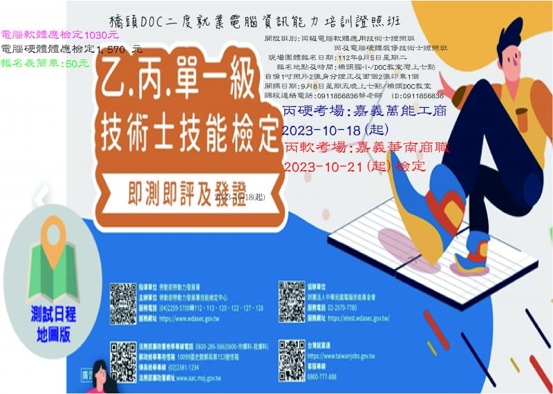 2023-10-18(起)丙軟考場:嘉義華南商職2023-10-21(起)檢定