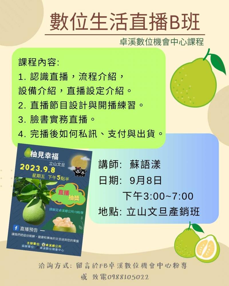 卓溪數位機會中心有直播實作教學,請參閱課程內容~歡迎大家來學習