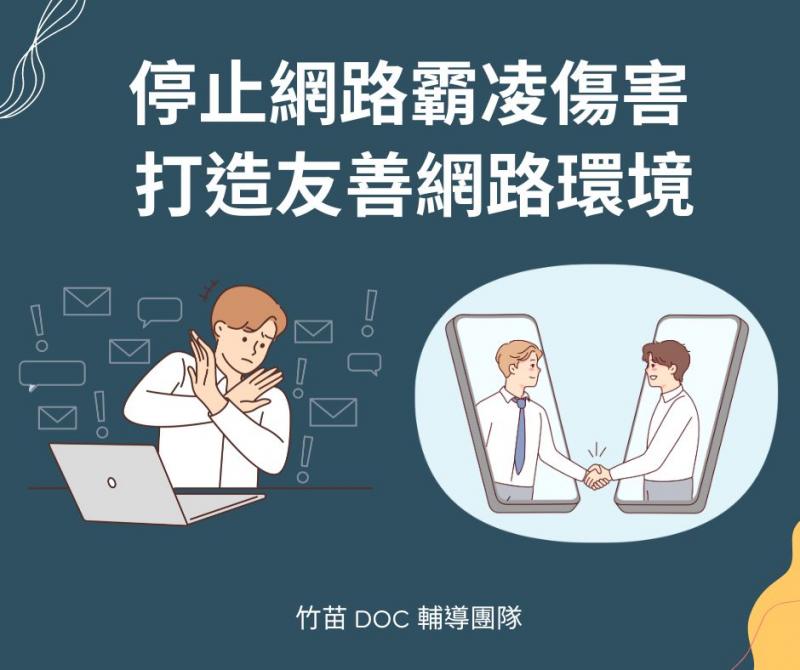 提醒大家留意平時的遣辭用句,不可對他人外貌、身材、能力、和性別特質等,任意嘲笑、辱罵、騷擾、毀謗或威脅,造成他人身心收到傷害。在按下鍵盤及滑鼠鍵時,多想個幾秒,一起在網路世界裡成為友善的人。