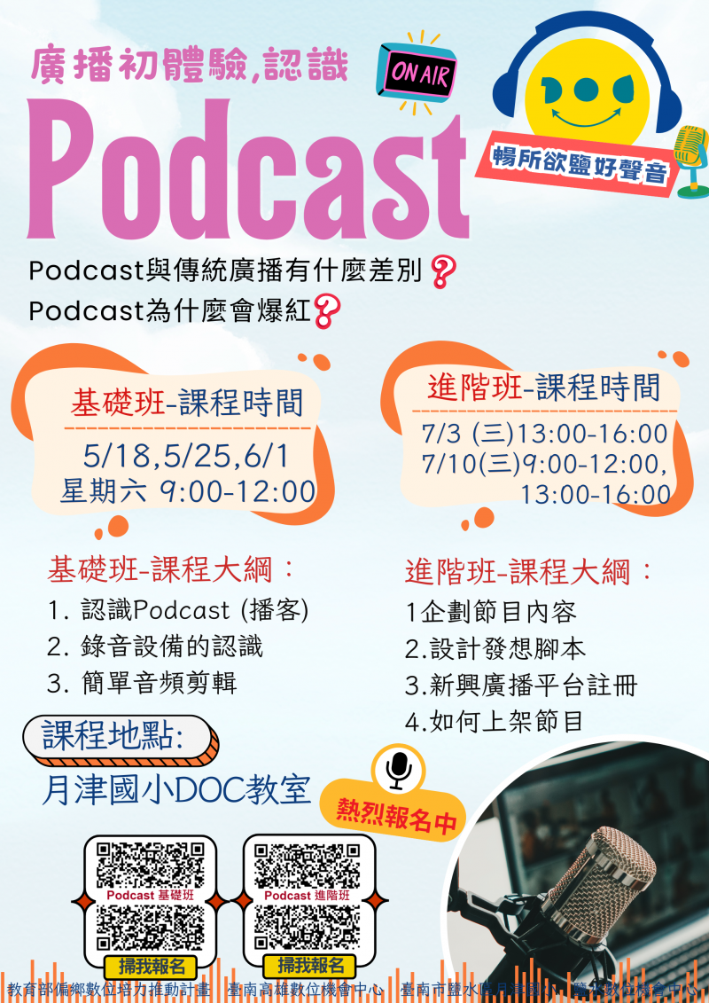 Podcast (播客)是一種隨選隨聽的數位媒體,想讓你的品牌上節目,還是想學習怎麼經營頻道,或只想探索Podcast爆紅的原因!快來手刀報名這門非常有趣的課程吧~