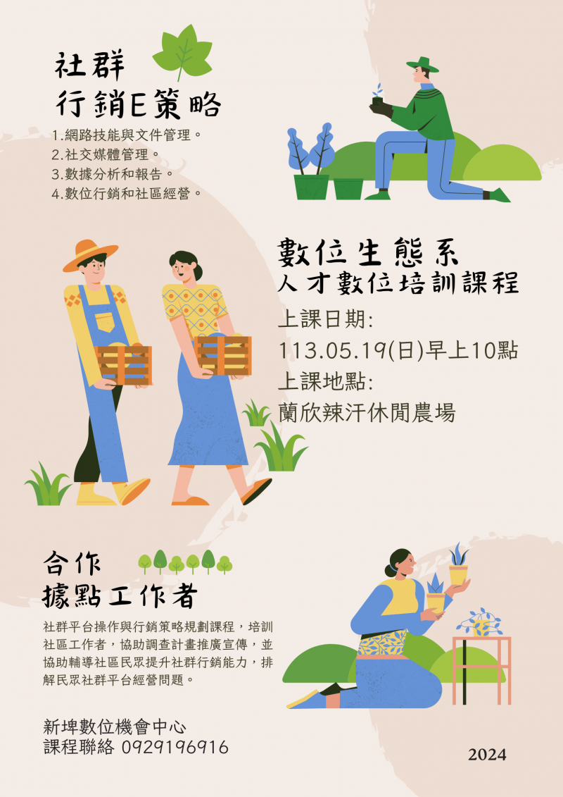 社群平台操作與行銷策略規劃課程,培訓社區工作者,協助調查計畫推廣宣傳,並協助輔導社區民眾提升社群行銷能力,排解民眾社群平台經營問題。