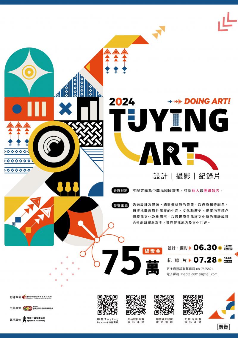 TUYING ART 2024 透過設計及鏡頭,細數樂桃原的奇蹟,以自身獨特視角,捕捉桃園市原住民族的生活、文化和歷史。提案內容須凸顯原民文化及桃園市,以展現原住民族文化特色精神或複合性創新概念為主,進而促進地方及文化共好。