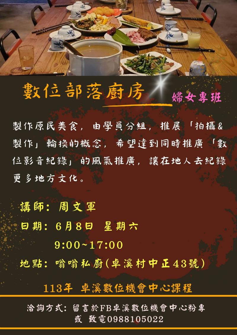 最新消息 DOC快訊 ::: <上一則 返回列表 下一則> 113年DOC課程-數位部落廚房 發布日期:2024-06-05 人氣:186 布農主廚-嗡嗡用傳統古物~帶你吃到不一樣的料理故事(從產地到餐桌),免費課程,歡迎來參與喔! <上一則 返回列表 下一則>