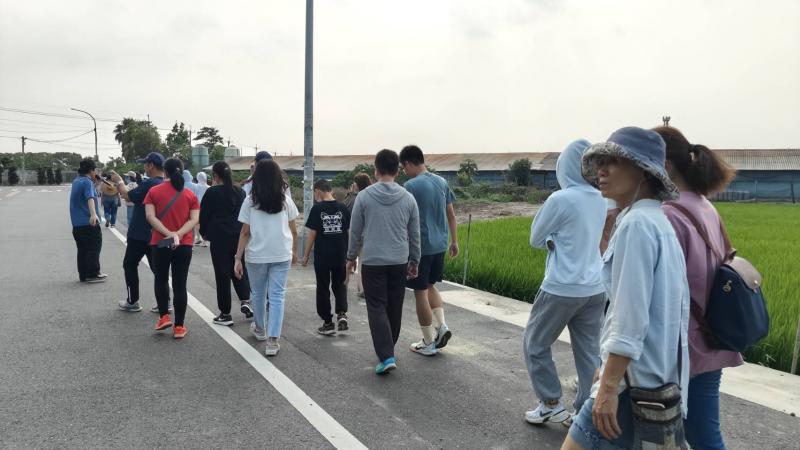 這次行走路線原本以校園的大外圍為主,沿途介紹校內各美麗的建築及設施,原本希望團體能慢慢健走,體驗欣賞周邊的景色,然而有的學員腳程真的很快,負責直播的人都來不及追趕,繞完校區2圈後大家轉往外圍的社區移動,沿途除介紹學校周邊的環境及建築,也訪談參與此次活動的心得,近40分健走活動也在大家的歡樂聲中完成。