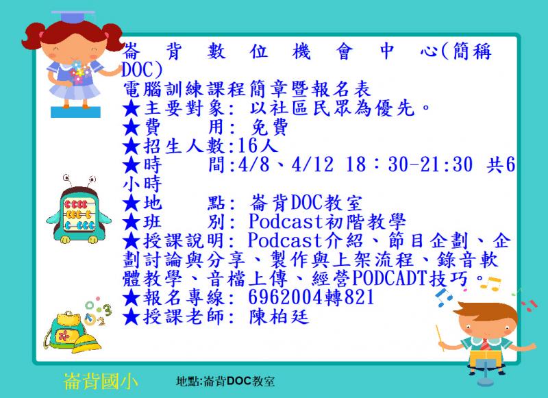 錄音軟體教學、音檔上傳、經營PODCADT技巧。