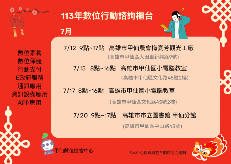 【甲仙DOC】7月份行動諮詢櫃台