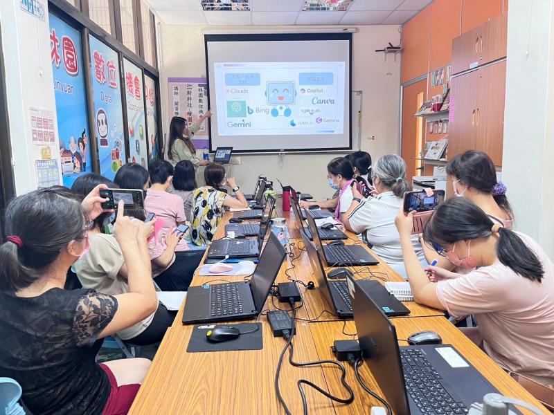 5.劉玟娟: 這門 AI 課程,雖然只是短短二天課程,老師教導我們利用ChatGPT 生成的文章+copilot軟體生成圖片,最後剪輯成一部短短動畫繪本,剛開始覺得好難,還好有老師的耐心教導與學員們的互相幫忙,能完成這部動畫繪本,實在是滿滿的成就感,很開心能參加這次由林園樹偉機會中心舉辦的活動,真的很開心,我期待在未來能夠將這些知識應用於實際,並不斷地學習與進步。