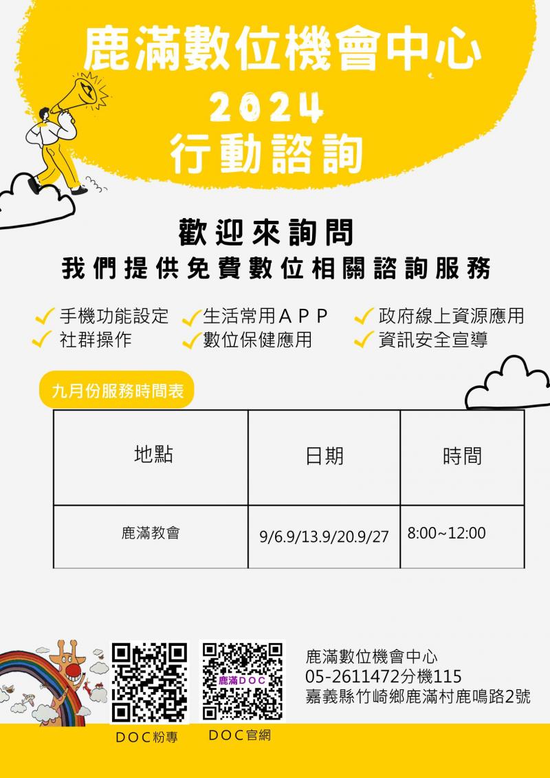113年鹿滿數位機會中心行動諮詢服務-9月份服務公告