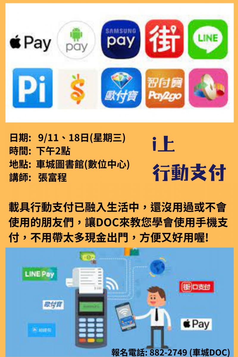 最新消息 DOC快訊 ::: <上一則 返回列表 下一則> i上行動支付 發布日期:2024-08-22 人氣:157 載具行動支付已融入生活中,還沒用過或不會使用的朋友們,讓DOC來教您學會使用手機支付,不用帶太多現金出門,方便又好用喔! 歡迎還沒報名~快來喔: 8822749 -車城doc <上一則 返回列表 下一則>