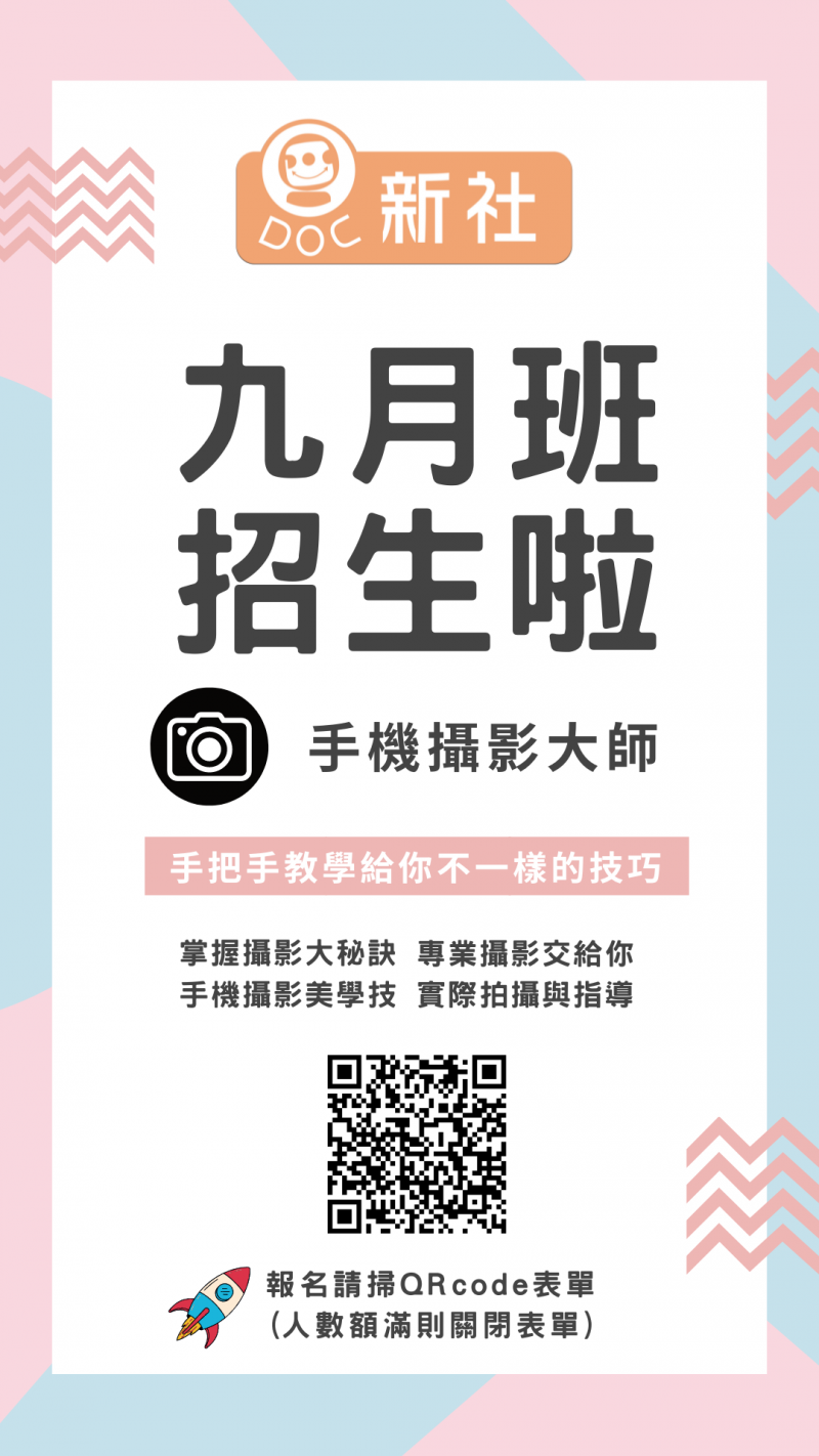 最新消息 DOC快訊 ::: <上一則 返回列表 下一則> 新社DOC課程報名海報 發布日期:2024-08-30 人氣:179 手機攝影大師:掌握攝影秘訣(課程+戶外拍攝)/劉曜寬 <上一則 返回列表 下一則>