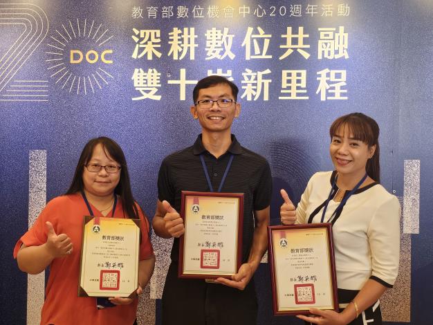「服務貢獻優良人員」項目,則有公館DOC吳雅琳執行秘書、張雲霞志工以及三灣DOC林慶榮志工獲頒獎狀,現場回應著熱烈的掌聲與讚譽!感謝得獎夥伴多年來對計畫持續付出的努力與奉獻,啟發了更多夥伴投入數位學習與服務,惠及更多的偏鄉地區及其民眾,是苗栗縣數位機會中心團隊的驕傲!