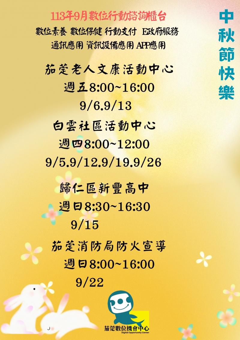 最新消息 DOC快訊 ::: <上一則 返回列表 下一則> 茄萣DOC 113年9月份數位行動諮詢服務 發布日期:2024-08-31 人氣:110 茄萣DOC 113年9月份數位行動諮詢服務 <上一則 返回列表 下一則>