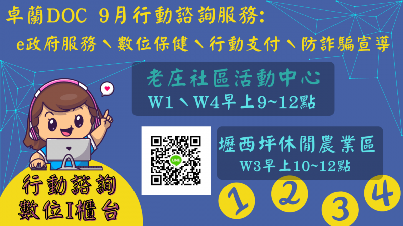 最新消息 DOC快訊 ::: <上一則 返回列表 下一則> 9月行動諮詢 發布日期:2024-09-03 人氣:100 卓蘭數位機會中心9月行動諮詢 歡迎有數位問題的民眾都可來現場諮詢~ 行動服務諮詢主題:數位素養、數位保健、e政府服務、通訊應用、資訊設備應用、APP應用 <上一則 返回列表 下一則>