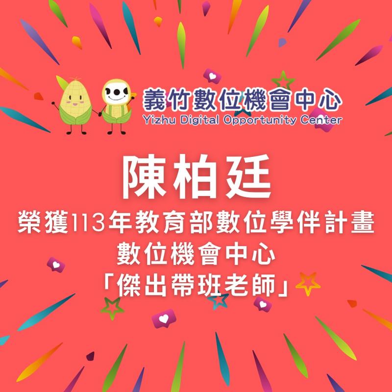 我們榮獲教育部數位學伴計畫「傑出帶班老師」囉!