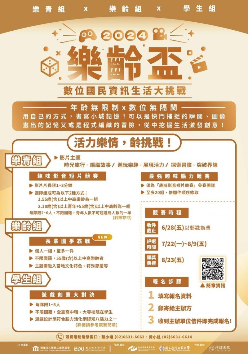 由 資策會數位教育研究所 舉辦的第二屆樂齡盃開始報名囉!