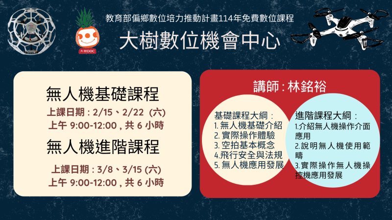 大樹DOC114年無人機基礎課程錄取名單 :