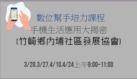 最新消息 DOC快訊 ::: <上一則 返回列表 下一則> 手機生活應用大揭密 發布日期:2025-02-25 人氣:100 數位幫手培力課程 手機生活應用大揭密 培訓社區工作者、志工及在地學員能在數位素養、與手機影音剪輯,善用手機上的各種應用成為數位好幫手,可教導或協助民眾數位生活應用。 時間:3/20.3/27.4/10.4/24 上午 9:00~11:00 地點:嘉義縣竹崎鄉內埔社區發展協會會館 <上一則 返回列表 下一則>