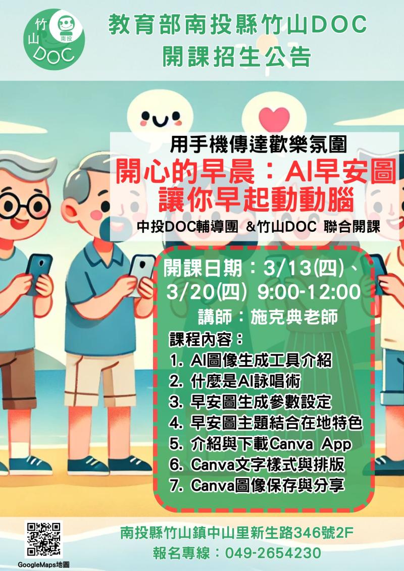 📢上課地點:竹山鎮中山里新生路346號2樓(新生社區活動中心)