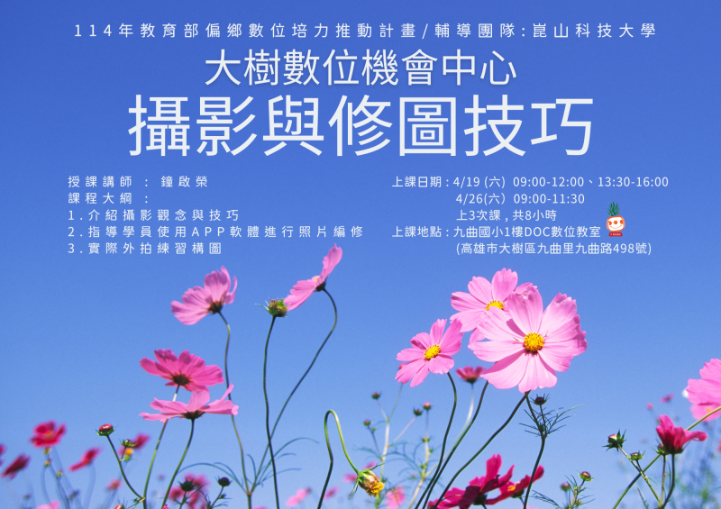 📣大樹DOC114年「攝影與修圖技巧」課程錄取名單 :