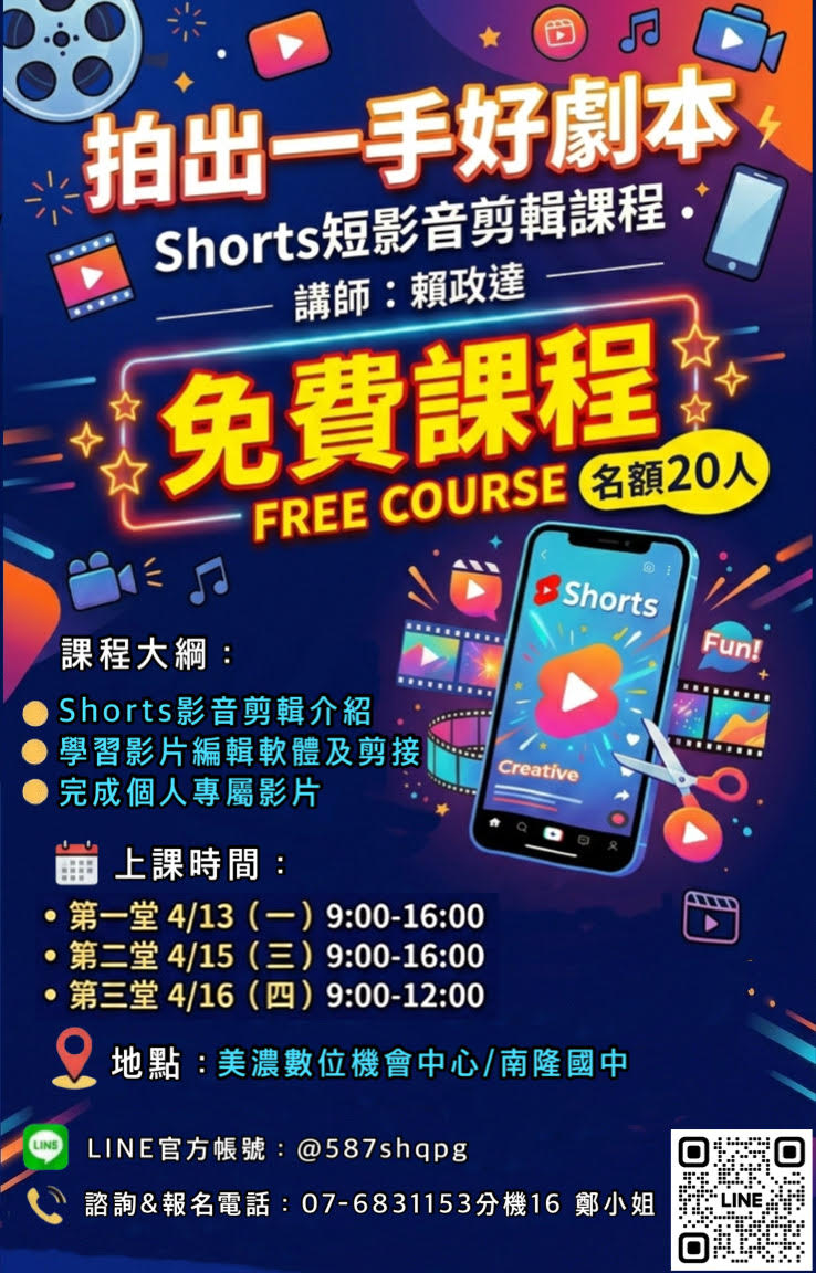 諮詢&報名專線: 07-6831153 分機 16 鄭小姐