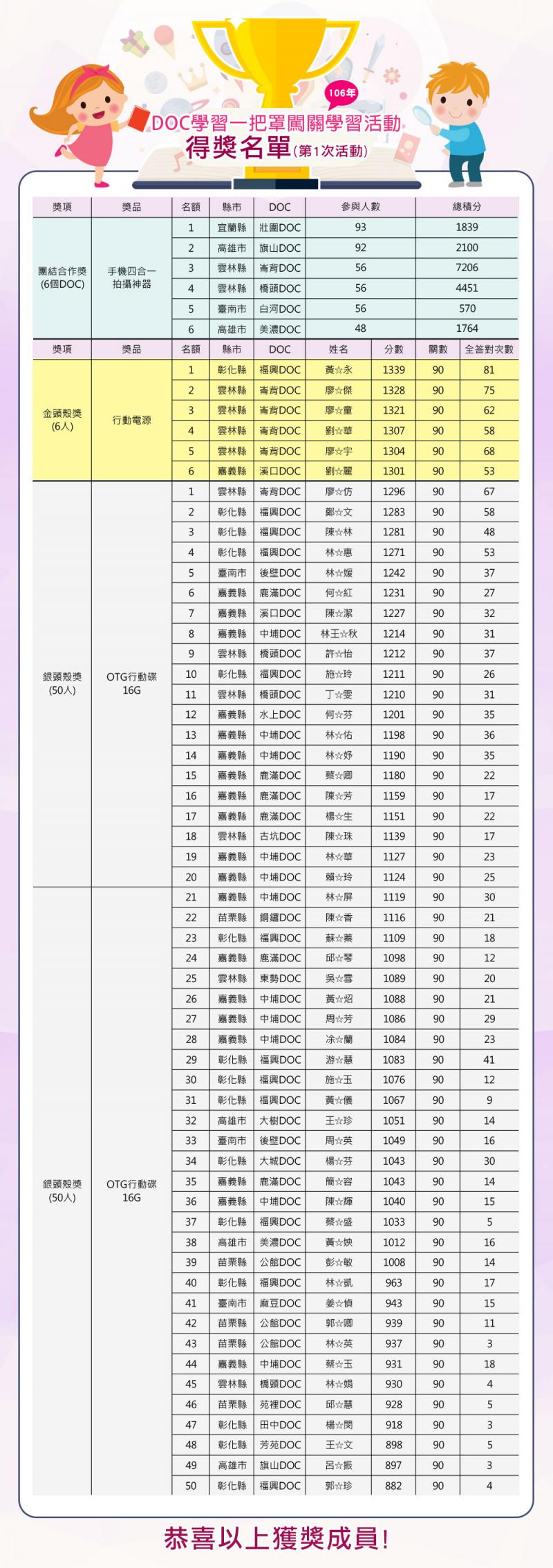 最新消息 DOC快訊 ::: <上一則 返回列表 下一則> 狂賀!!!白河DOC獲得106年第一次「DOC學習一把罩-闖關學習活動」團結合作獎殊榮!! 發布日期:2017-09-04 人氣:202 狂賀!!!白河DOC獲得106年第一次「DOC學習一把罩-闖關學習活動」團結合作獎殊榮!! 請各位學員再接再厲! <上一則 返回列表 下一則>
