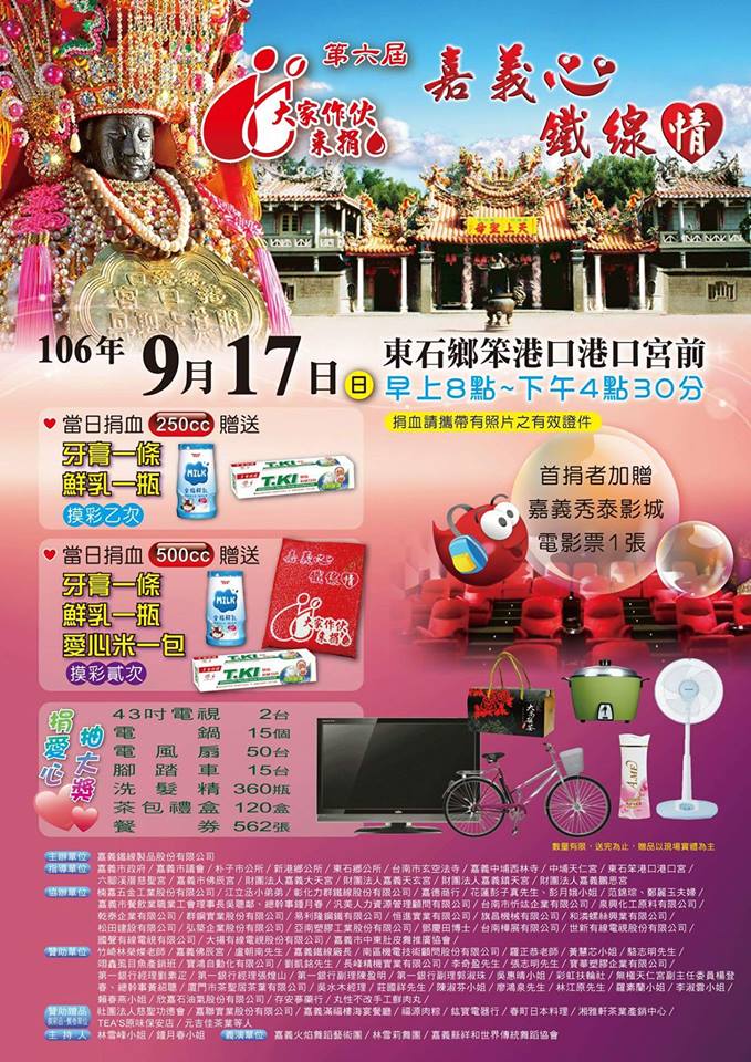 9/17港口宮捐血活動8:00開始