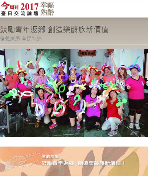 第二個十年「全民社造」行動計畫(二〇一五—二〇二四)行動計畫,在這股年青人返鄉風潮的帶動,直接影響學生族群也開始反思如何利用所學投入社區服務。以創新服務的精神加入社造,讓年輕人返鄉不只是務農或賣咖啡,其實信義房屋也發現有更多的議題、更實際的作為,是圍繞在高齡者的陪伴或技藝的文化傳承上。