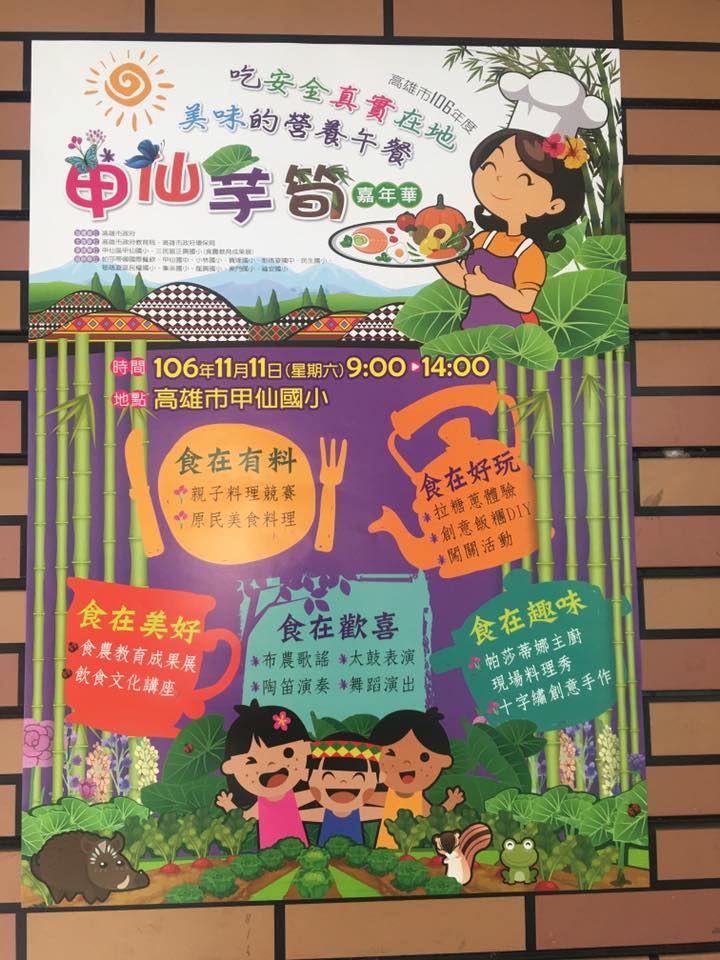 一年一度的甲仙芋筍節終於在大家的期盼中即將到來,這次的美食嘉年華由甲仙國小舉辦的活動有五大主題,其中還有配合甲仙DOC推廣活動的料理王大賽及甲仙芋筍節e起來
