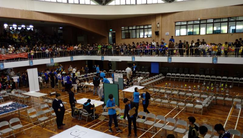 屏東科技大學的體育館內,有來自全國的學生,他們手裡拿著的機器人,可以投籃、躲避障礙物、循著軌跡前進。在大樓的川堂,一群穿著團隊服裝的學校師生正在進行最後的練習,對於這樣子全國的競賽場面,學生似乎感到有些緊張。