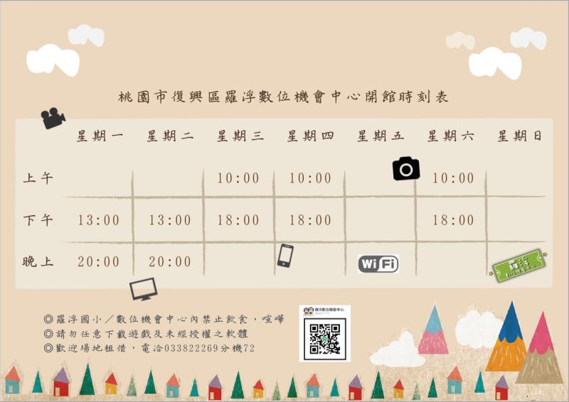最新消息 DOC快訊 ::: <上一則 返回列表 下一則> 數位機會中心開館時間即將更新 發布日期:2017-12-19 人氣:236 羅浮數位機會中心開館時間即將更新囉~ 各位鄉親們,趕快拿起手機,記更新後的時刻噢! 桃園市復興區羅浮數位機會中心 ADD:羅浮國小活動中心1樓(桃園市復興區羅浮里3鄰16號) MAIL:loufu.d.o.c@gmail.com TEL:(03)3822269分機72 <上一則 返回列表 下一則>
