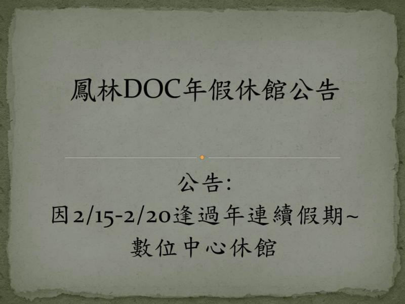 鳳林DOC年假休館公告