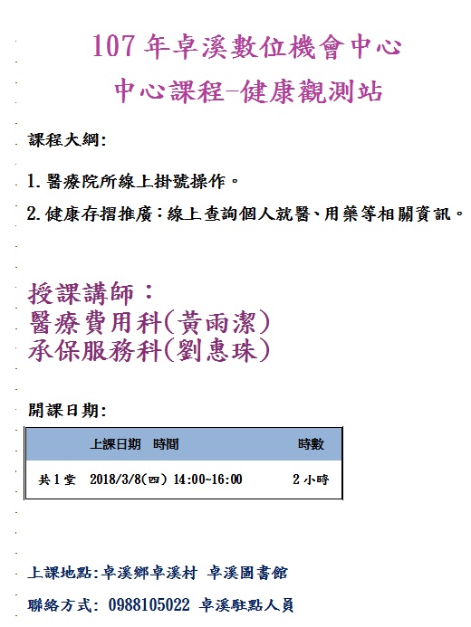 107年卓溪數位機會中心 中心課程 -健康觀測站