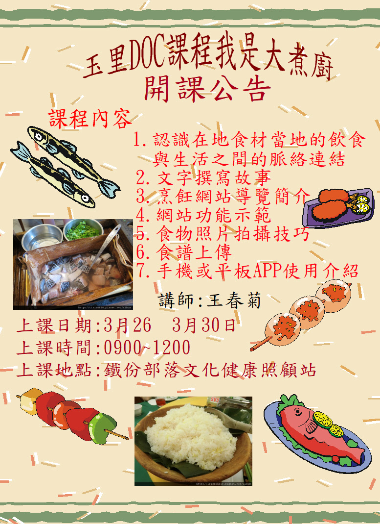 玉里DOC我是大煮廚開課公告