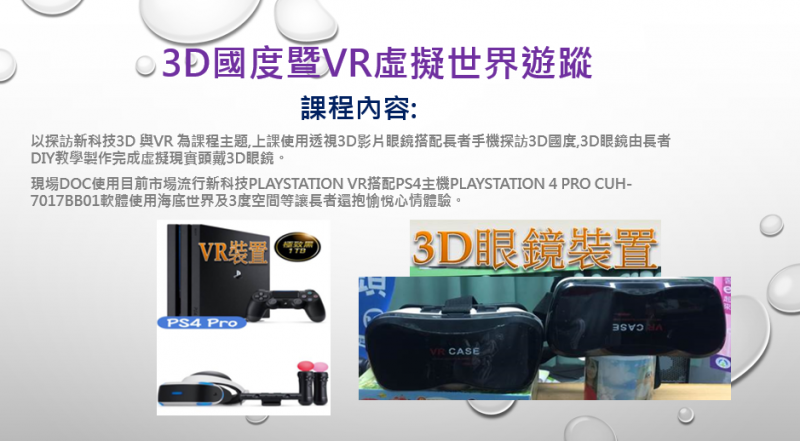 1-以VR 為課程主題,上課使用透視3D影片眼鏡搭配手機探訪3D國度,
