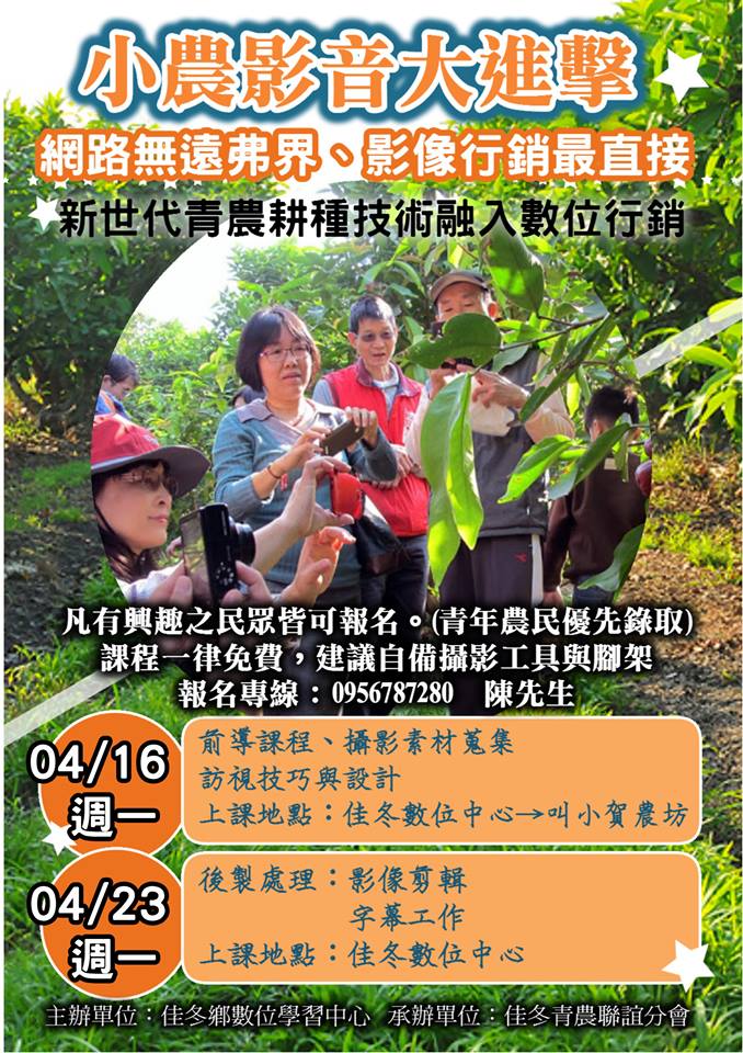 各位青農們請要把握這免費的影像行銷課程,