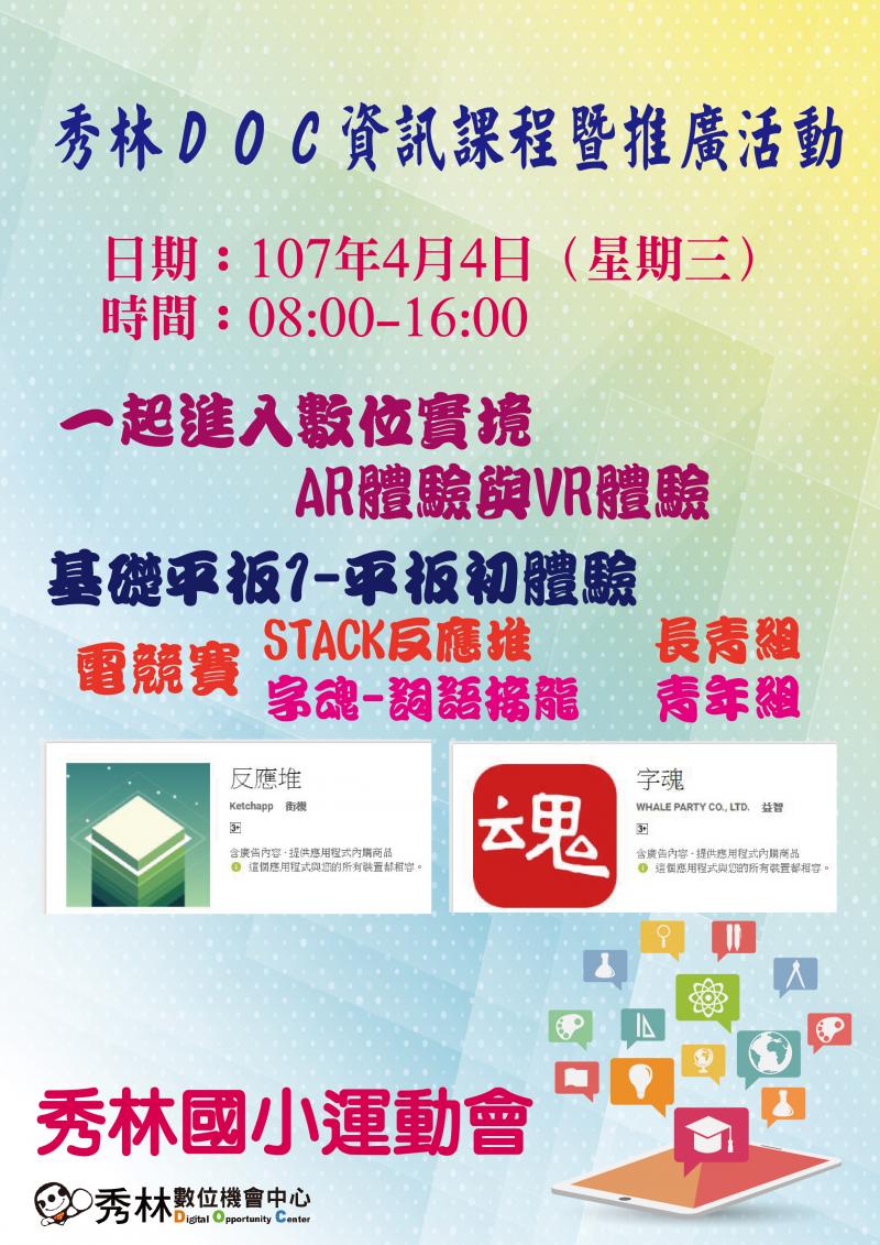 秀林數位機會中心推廣活動暨資訊課程公告