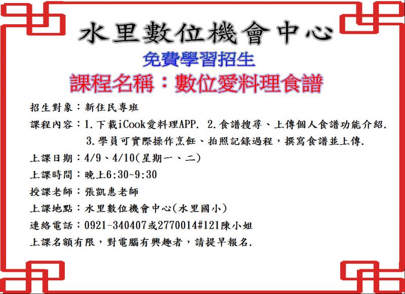 最新消息 DOC快訊 ::: <上一則 返回列表 下一則> 107.04.09數位愛料理食譜課程招生 發布日期:2018-04-03 人氣:152 更正:數位愛料理食譜4月 <上一則 返回列表 下一則>