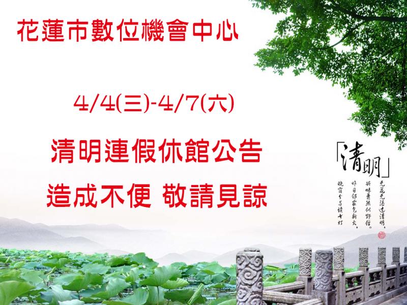 清明連假休館公告4/4(三)-4/7(六)