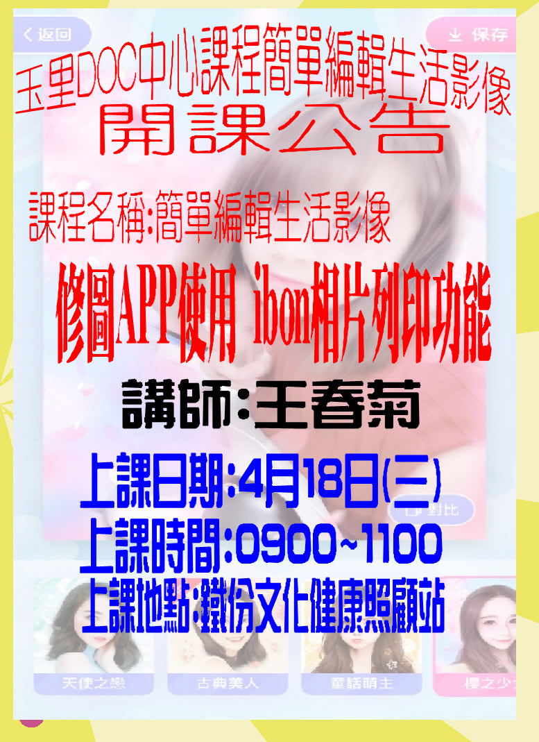 玉里DOC~中心課程簡單編輯生活影像開課公告