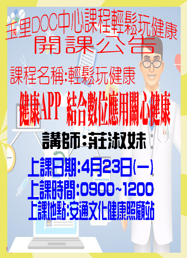 玉里DOC~中心課程輕鬆玩健康開課公告