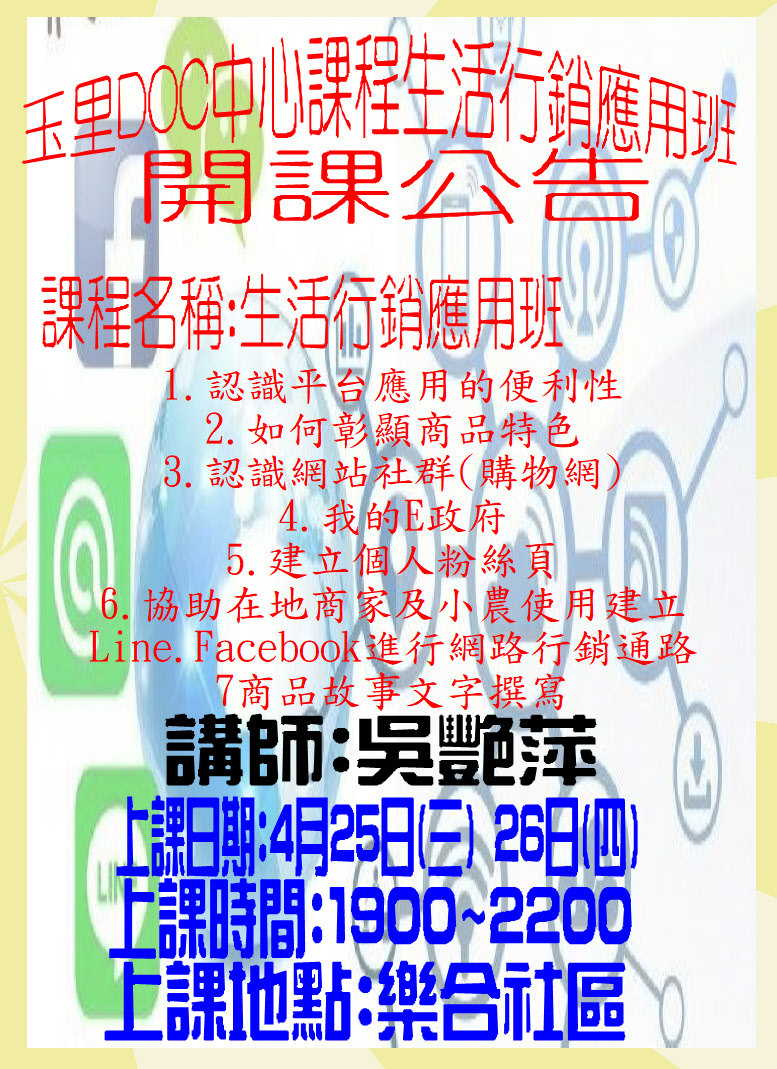 玉里DOC~課程生活行銷應用班開課公告
