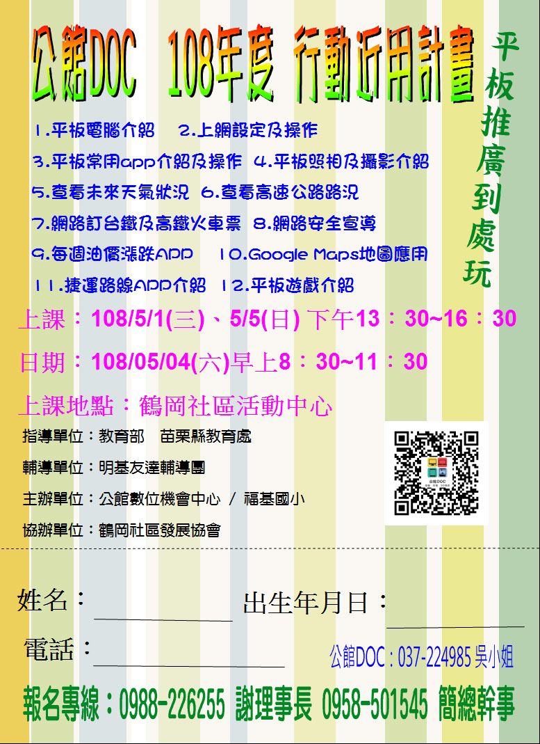 108年度 平板行動近用分班-公館鄉鶴岡社區