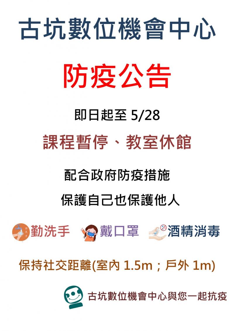 即日起至5/28 課程暫停、教室休館