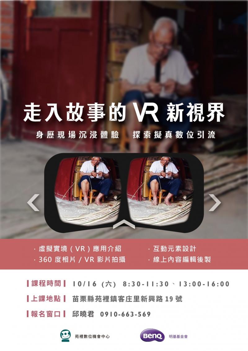 最新消息 DOC快訊 ::: <上一則 返回列表 下一則> [開課通知]10/16 走入故事的 VR 新視界 發布日期:2021-09-27 人氣:193 [開課通知] 課程名稱:走入故事的 VR 新視界 講師姓名:林智國 老師 上課地點: DOC教室 上課時間: 10/16(六) 08:30 ~ 11:30、13:00~16:00 課程內容:1.環景影像的拍攝 2.影像匯入VR環境 3.虛擬場景設定與回應 ※人數限定15人。 <上一則 返回列表 下一則>