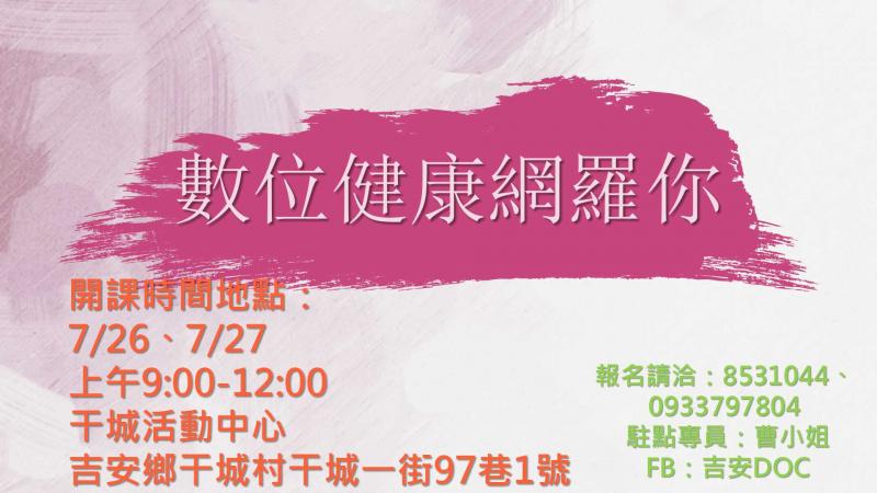 0726-0727 數位健康網羅你 即將開課喔!!