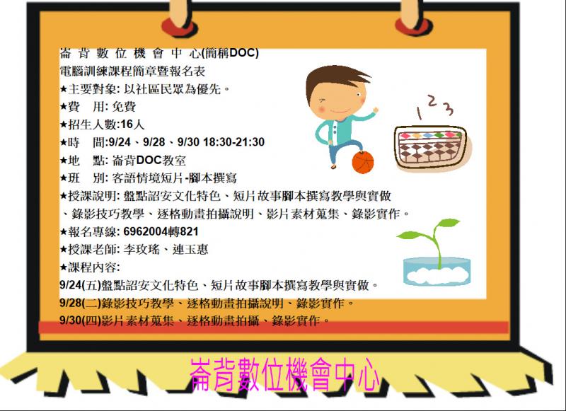 客語情境短片-腳本撰寫招生海報