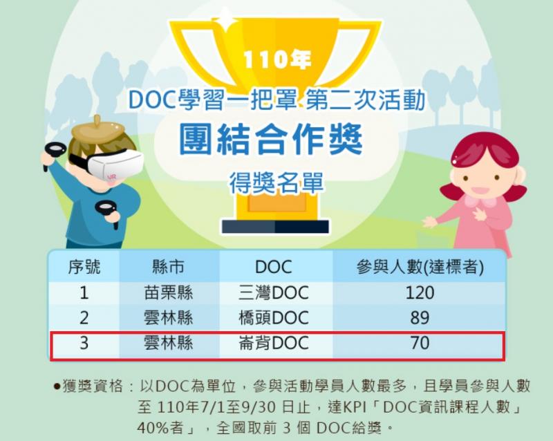 最新消息 DOC快訊 ::: <上一則 返回列表 下一則> 110年度學習中心第二次「學習一把罩-闖關學習活動」、「學習一點通-數位學習積分賽」全國團結合作獎獲獎名單 發布日期:2021-11-02 人氣:200 學習一把罩-闖關學習活動學習一點通-數位學習積分賽 <上一則 返回列表 下一則>