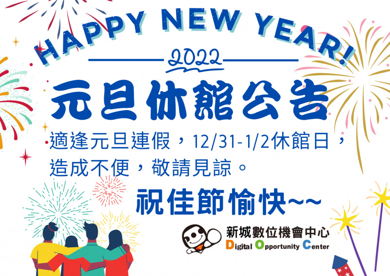 【休舘公告】12/31-1/2 新年快樂!